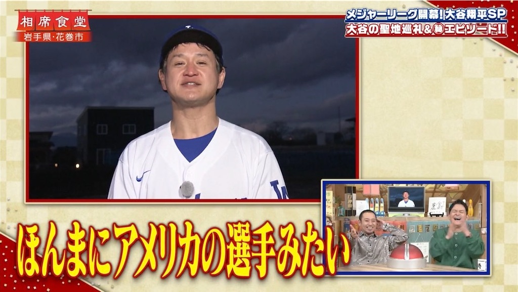 ガリットチュウ福島が大谷翔平に扮して岩手県奥州市をロケ。大谷の私設ファンクラブの代表をしている男性と話をし、周藤がトラウトのサインボールを欲しがって水原一平がサインボールを30個分貰いに行き、選手や栗山監督までも喜んで貰っているのを見た大谷翔平が「憧れるのをやめましょう」と言ったのだという裏話が聞けるなど収穫あり。