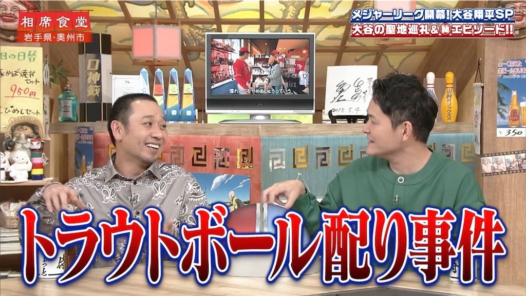 奇しくも相席食堂と同週に「一品だけ大谷翔平グッズ」。野球選手グッズ店を物色。