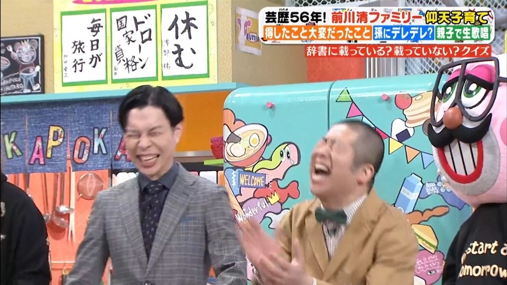 ◆3月10日(月)ゲスト・前川清ファミリー(前川清、紘毅、前川侑那)◆伊集院が珍しくカラフルなシャツを着用、本人のイメージは「高速バスのシート」w ◆前川清登場してすぐ、前回共演したハライチのイメージは「司会者っぽくない」とすぐディスるw ◆年間300日ほど家に帰らなかった前川、1人でいる時間がとにかく好き、子供よりも馬を優先していたと語る前川→しかし子供達からは、普段の時や出身地である九州の番組だと親子仲睦まじく接してるのに、東京の番組だと急に冷たくなる…と真逆の意見がw →前川曰く東京が好きではない、羽田空港に着いた時からもうスイッチが切り替わってしまうとw ◆ずっと子供の面倒を見ていた奥さんだが、夫のステージにかける思いを知っていて尊敬していると。VTRコメントを寄せた純烈酒井は前川に助けられていると感謝を述べる。前川清はそれら全てを否定するが、照れ隠しのようにも見える。◆R-1チャンピオン友田オレ登場!実は、辛いもののネタの歌手のモデルは前川清!→親子3人で出てる番組を毎週見ていて、テーマ曲は把握済みw 急遽4人で歌うことに→感無量の表情を浮かべる友田◆トーク中の人柄もそうだし、歌唱パートになった時お客さんも演者も全員を巻き込んで楽しませようとする心意気がすごく良かった。前川清また出て欲しい。