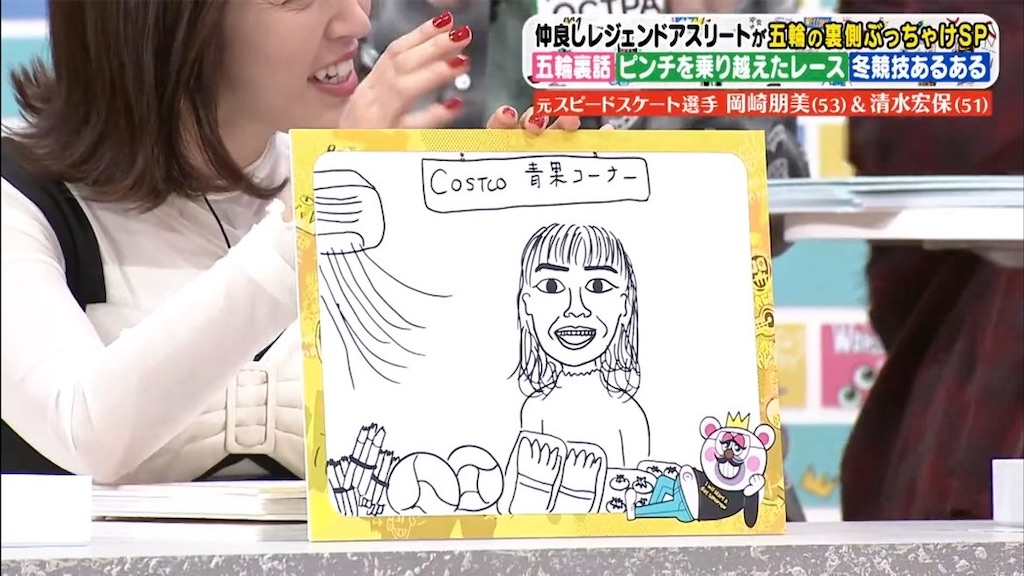 ◆3月11日(火)ゲスト・岡崎朋美&清水宏保◆元スピードスケート選手の2人、現役当時の太ももが逞しすぎる◆神田さんから「コストコの青果コーナー寒くないっぽい」w ◆岡崎は椎間板ヘルニアを患い、当時復帰した前例がない中でリハビリを頑張り見事復帰、ソルトレーク五輪で新記録を樹立!◆清水も五輪の2ヶ月前に転倒し足を7針縫う怪我を負う→すぐ縫わなければ次の試合に支障が出る、とその場で麻酔なしで縫ったと!!◆清水のお宝は金銀銅メダル、鑑定額は1200万円(あくまで最低額)!
