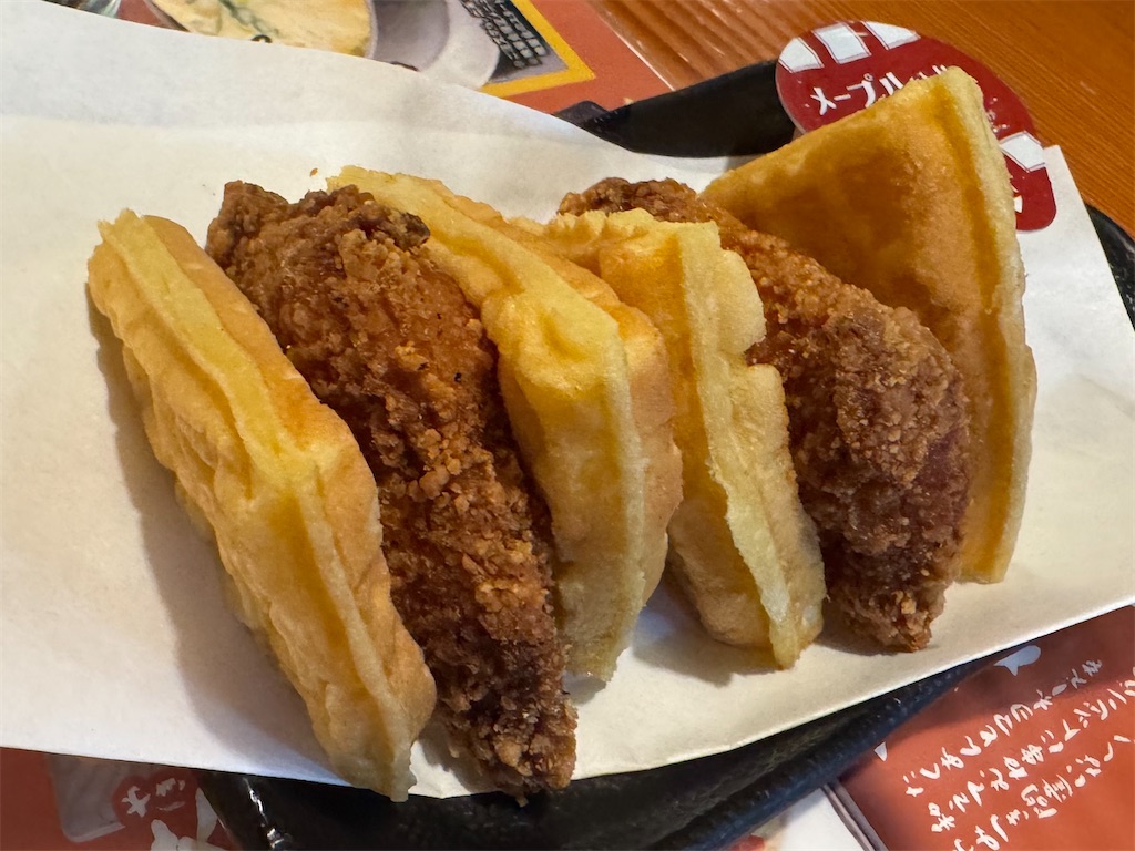 鳥貴族で「ワッフルチキン」を食べた。ワッフルに挟まれたフライドチキンに、お好みでメイプルシロップをかけて食べるという料理。何もかけないで食べると、基本しょっぱい中に微かな甘みを感じられる。おかずとしてアリ。少しだけメイプルシロップをかけると、一気にマックグリドル感が増す。俺は全然アリだったが、人は確実に選ぶと思う。